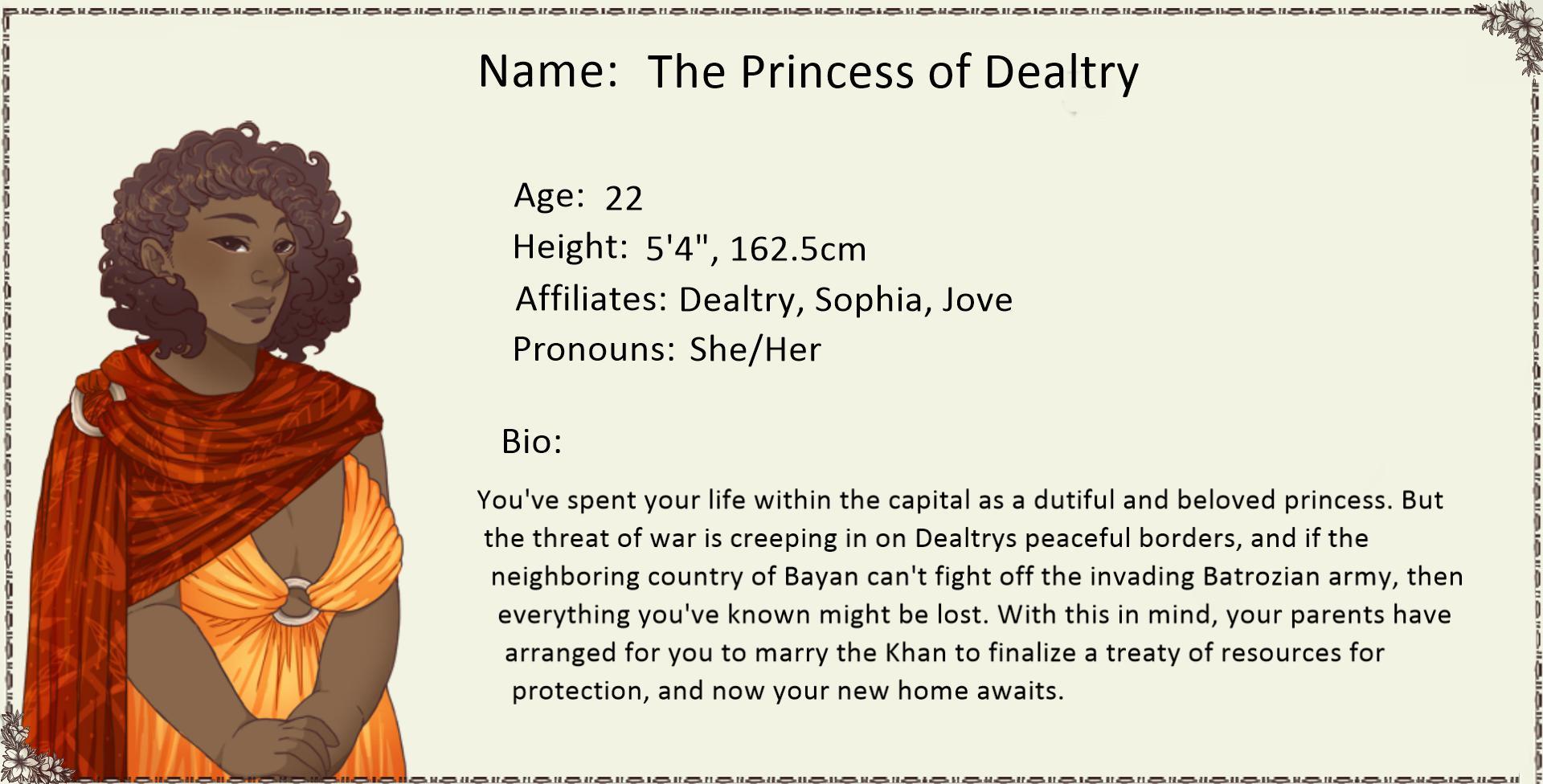 Вы принцесса Дилтри, посланная выйти замуж за хана Баяна и обеспечить союз между вашими странами. Но ваша будущая невеста оказывается неуловимой, и в вашем новом доме можно найти не одно отвлечение.