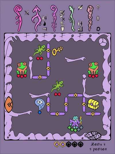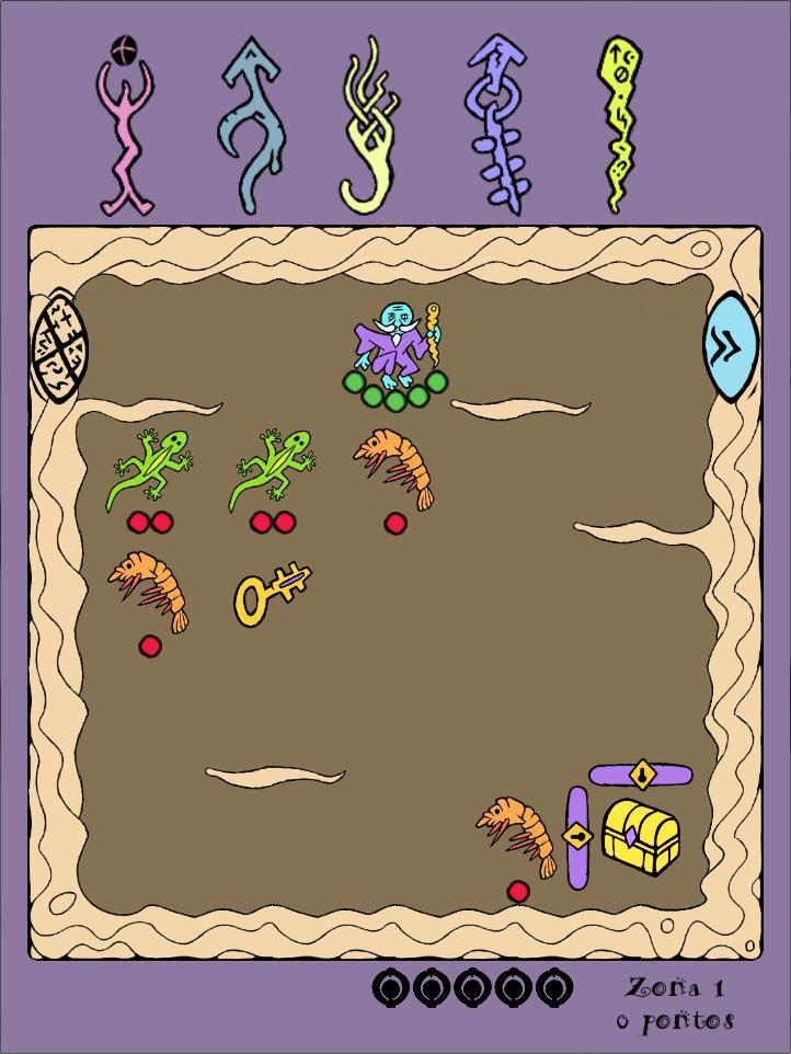 Tens cinco varinhas mágicas mas não sabes o que elas fazem. Tenta descobrir seus efeitos e attravessar todas as cinco zonas. Toma os tesouros também se podes!