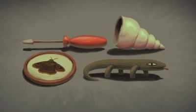 Внутри старой деревянной коробки лежат четыре любопытных предмета: игрушечная ящерица, пойманная моль, отвертка и морская ракушка. У каждого есть своя история…